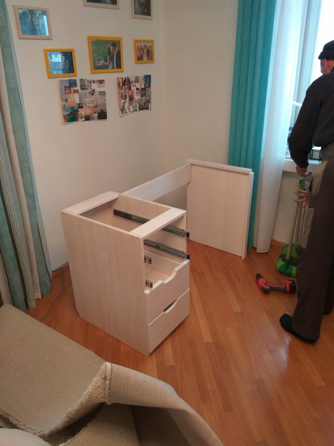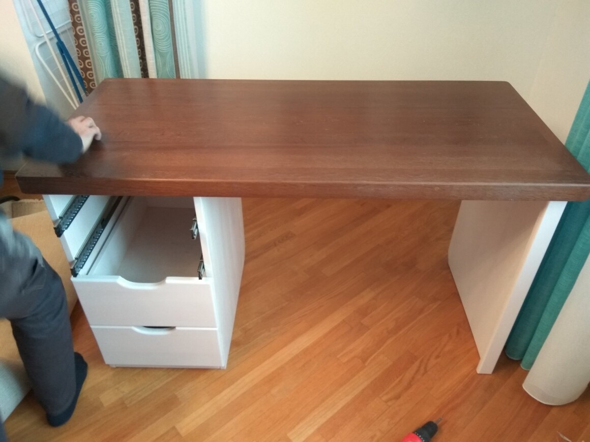Стол собирается на производстве, разбирается, красится, крупные части собираются. После этого доставляем готовый конструктор для сборки, сборка у заказчика занимает 20 минут.
