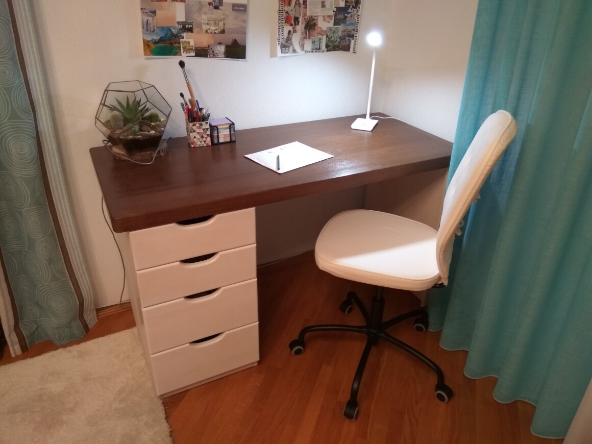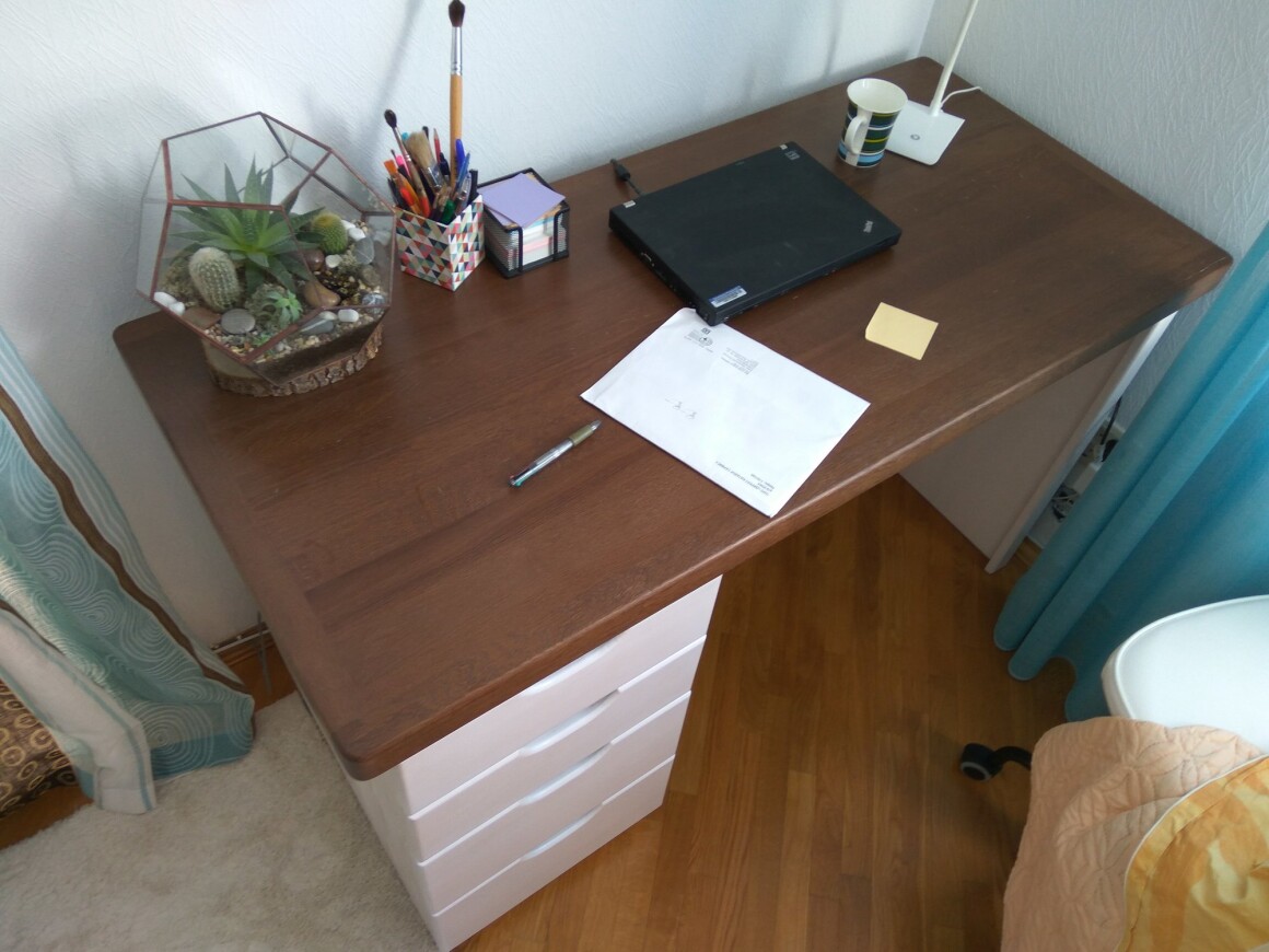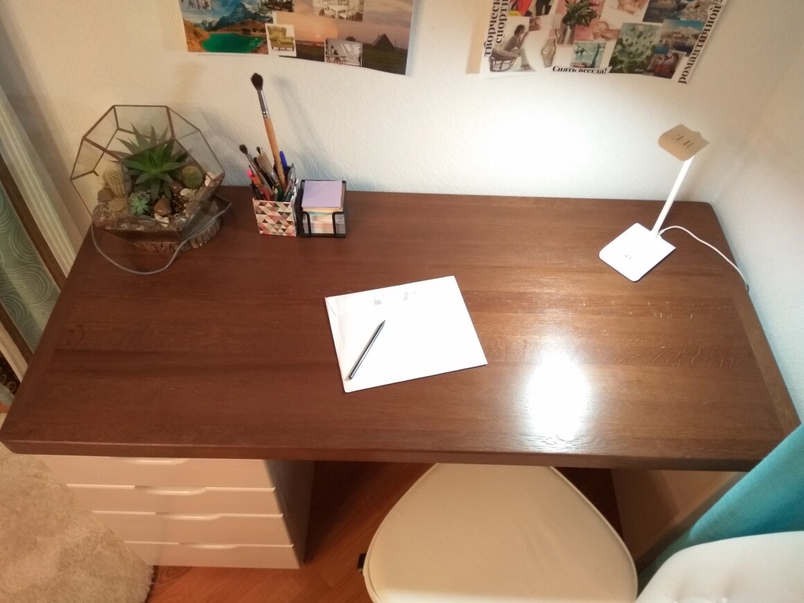 - Столешница: морилка цвета орех + полиуретановый лак для столешниц